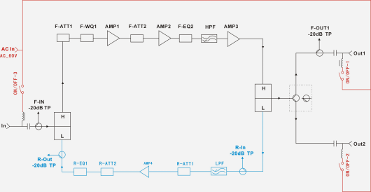 ■ 순방향 경로: 사전 단계에서는 GaAs MMIC를 채택합니다. 반환 경로: MMIC 또는 모듈(선택 사항). 출력단은 최신 수입 고굴절 전력 더블러 모듈을 채택하여 높은 출력 레벨, 낮은 왜곡 및 높은 SNR을 달성합니다.
